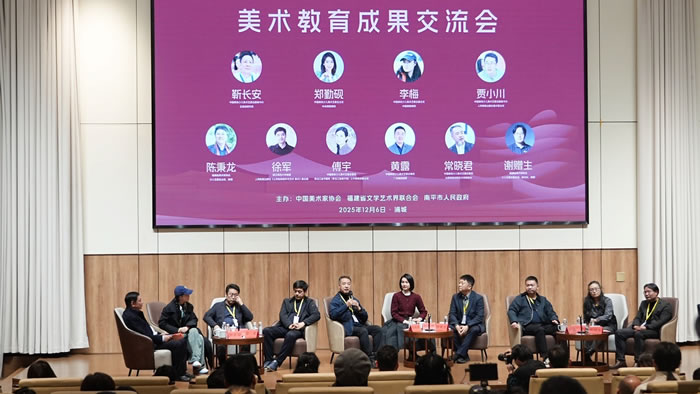 美术教育成果交流会上,中国美术家协会少儿美术艺委会主任、中央美术学院博导郑勤砚,中国美术家协会少儿美术艺委会副主任、中国美术学院博导李梅,中国美术家协会少儿美术艺委会副秘书长、人民教育出版社美术室主任贾小川,中国美术家协会少儿美术艺委会副秘书长、正高级研究员靳长安,浙江师范大学教授、人民教育出版社《义务教育教科书艺术 美术》副主编徐军,中国美术家协会少儿美术艺委会委员、太原师范学院艺术学院院长常晓君,中国美术家协会少儿美术艺委会委员、广州美术学院教授黄露,中国美术家协会少儿美术艺委会委员、黑龙江省书画院(黑龙江省美术馆)公共教育部副主任傅宇,福建省美术家协会少儿艺委会主任、福建幼儿师范高等专科学校教授陈秉龙和福建省美术家协会少儿艺委会副主任兼秘书长谢赠生教授共同与在座师生沟通美育经验,热烈畅谈。