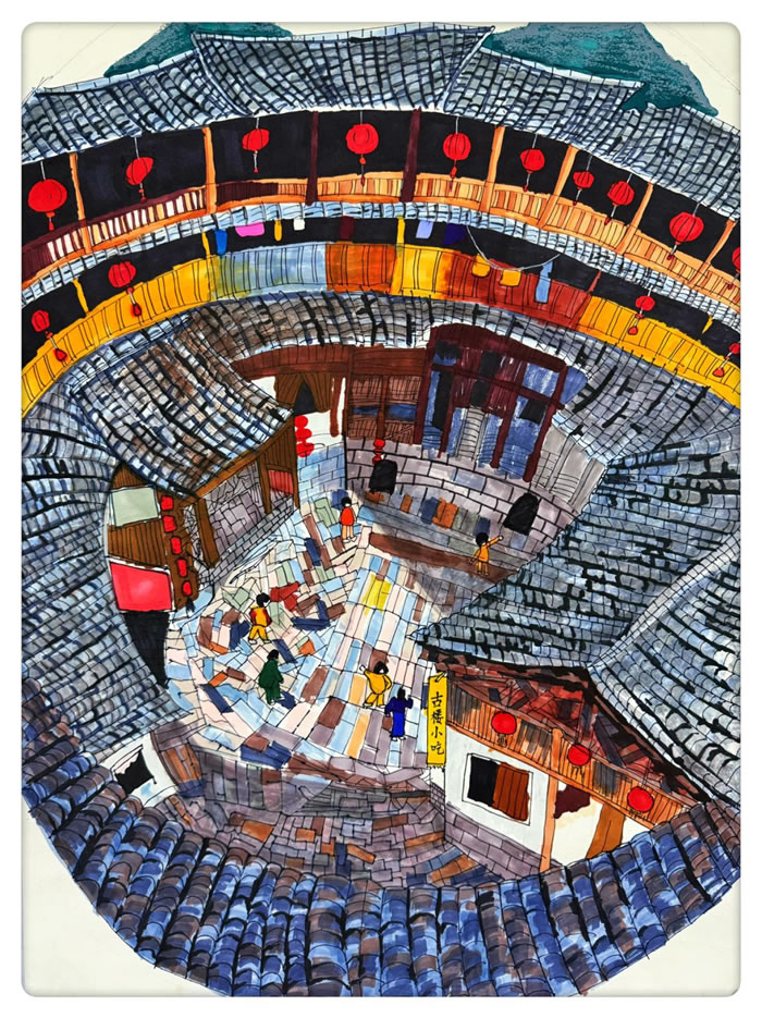 《圆屋·圆梦》丁乐妍(小学一组)马克笔52×38cm