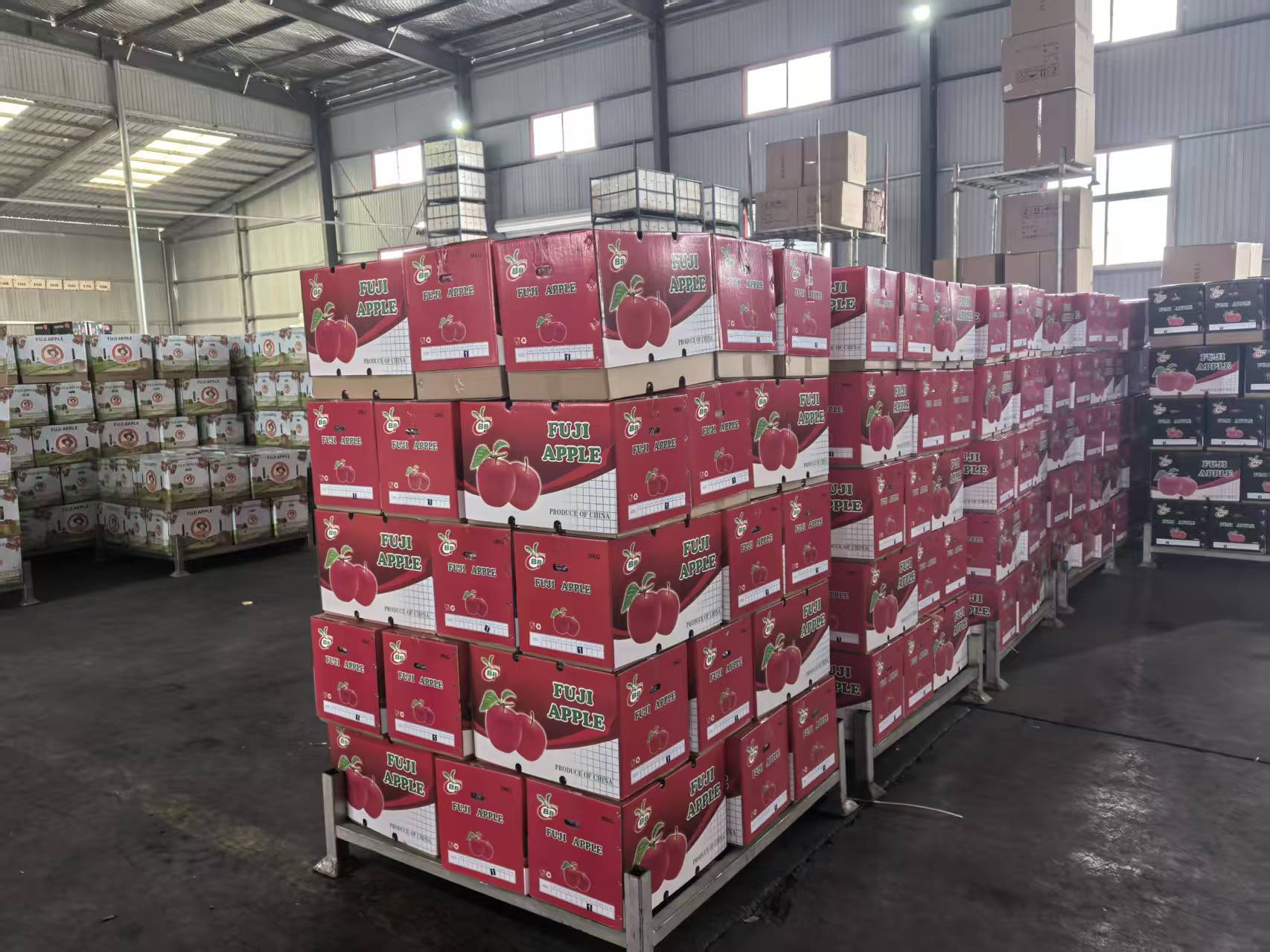 皓美果蔬的仓储基地里,即将发往海外的苹果。