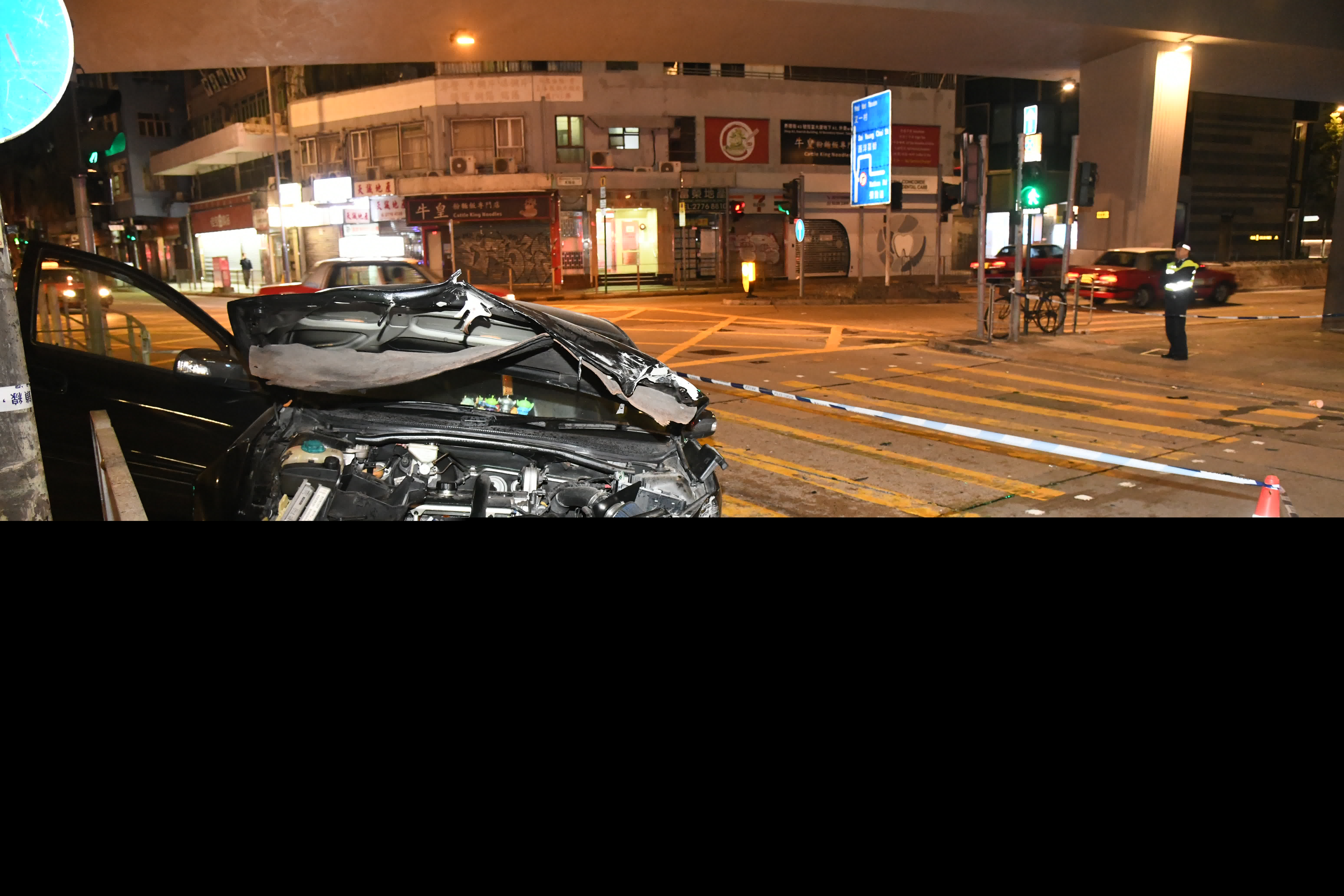 事後警方封鎖現場調查,在平治房車內檢獲77粒煙彈及26包懷疑危險藥物,案件列作狂亂駕駛、交通意外有人受傷及販運危險藥物處理,交由旺角刑事值日隊第五隊跟進,正追緝涉案在逃司機歸案。