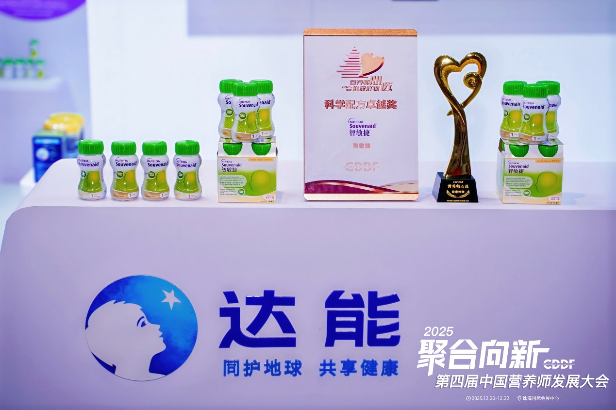 秉承“通过食品,为尽可能多的人带来健康”的使命,达能纽迪希亚持续深耕医学营养领域,致力于提供覆盖全生命周期的营养支持。在本届大会展区,专为轻度认知衰退及阿尔茨海默病设计的智敏捷,成为现场关注焦点;此外,智敏捷还获得了本次第四届营养师发展大会上“营养师心选健康好物”的“科学配方卓越奖”。