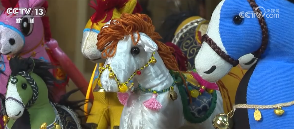 布艺文创工作室里,一款款造型不同、形态各异的马元素文创产品琳琅满目,手工艺人正在认真检验每一款产品,根据订单及时给客户发货。