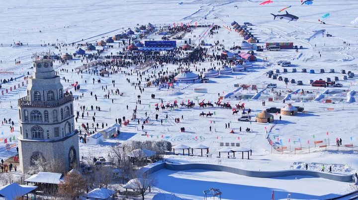 “胖头鱼、鲤鱼、鲫鱼……今年喜获丰收。”鱼把头难掩丰收喜悦。连环湖湖畔,渔猎文化墙、主题雪雕、百福鱼廊等景观依次排开,充满蒙古族风情的《渔猎冰湖》舞台剧同步上演……当地渔猎文化特色展现得淋漓尽致。