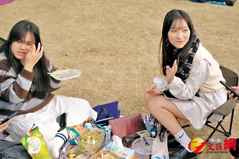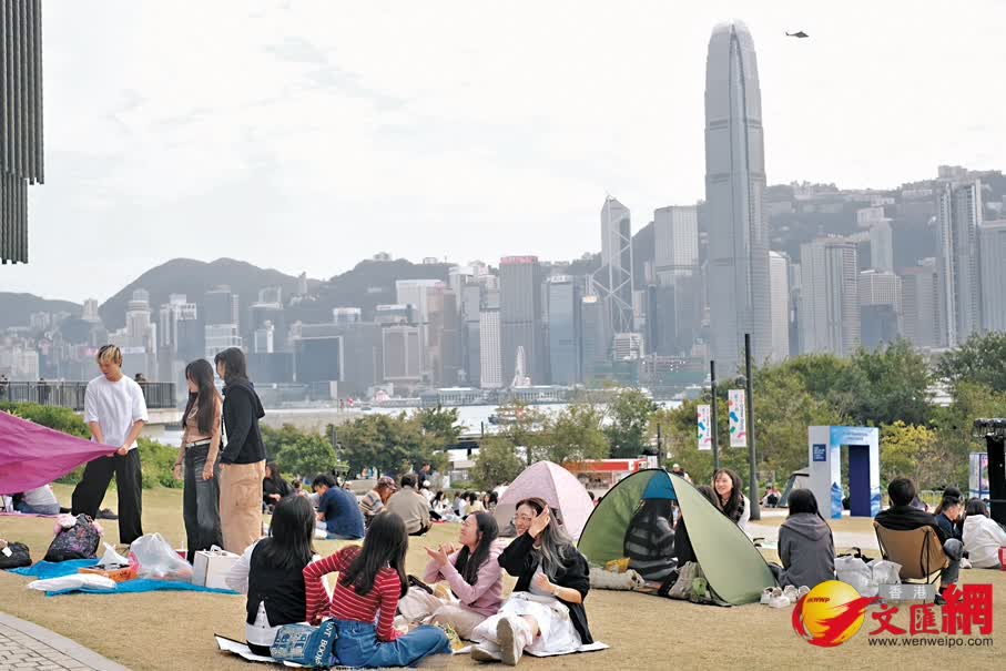 昨午西九文化區的草坪已擠滿人群,不少人提前到場鋪上野餐墊、搭起帳篷,擺放輕食與飲品,播放音樂,氣氛熱鬧。有人則選擇於海濱長廊散步,亦有家庭在草地上玩耍,享受2025年最後一天的悠閒時光。