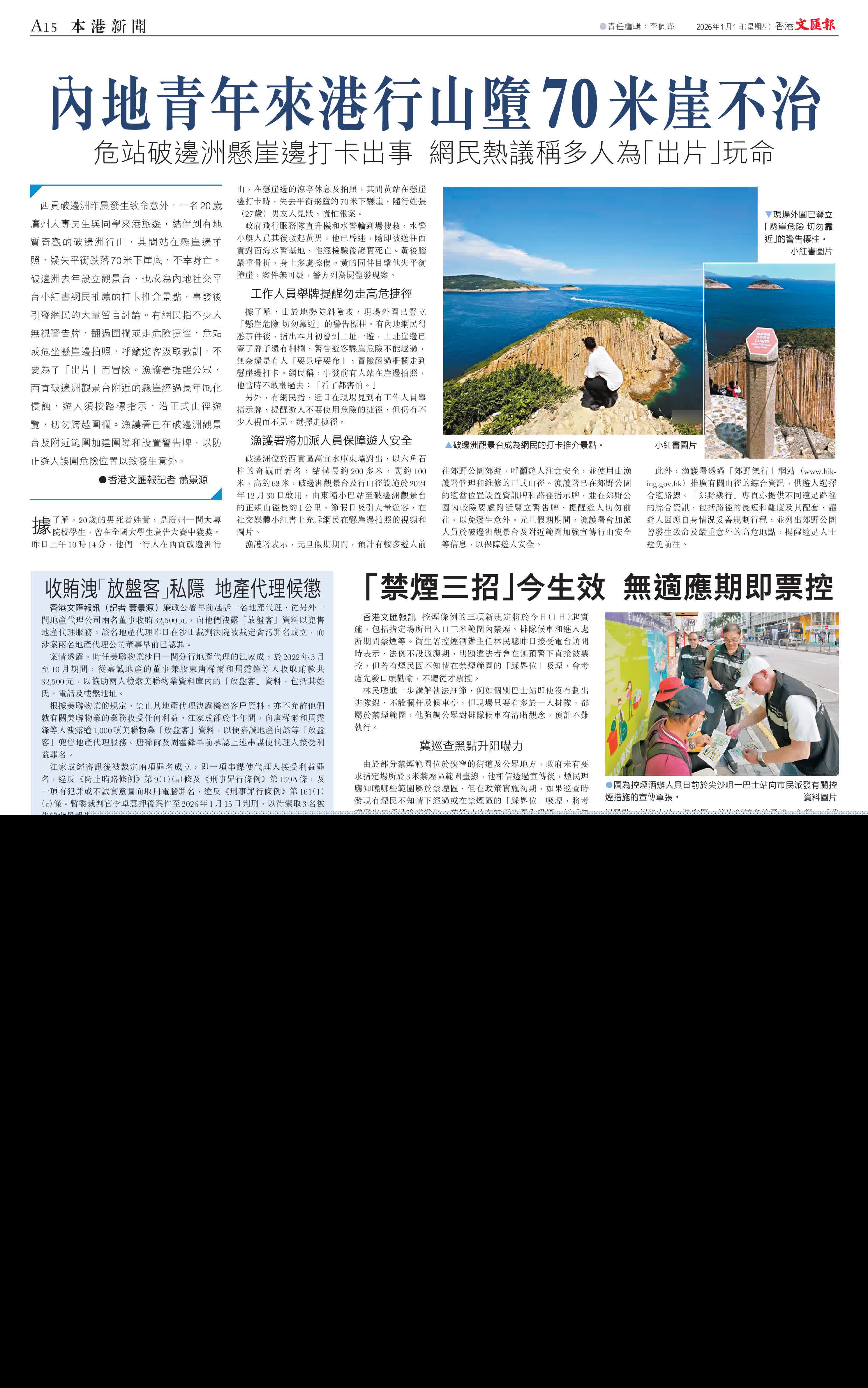 香港文匯報訊 控煙條例的三項新規定將於今日(1日)起實施,包括指定場所出入口三米範圍內禁煙、排隊候車和進入處所期間禁煙等。衞生署控煙酒辦主任林民聰昨日接受電台訪問時表示,法例不設適應期,明顯違法者會在無預警下直接被票控,但若有煙民因不知情在禁煙範圍的「踩界位」吸煙,會考慮先發口頭勸喻,不聽從才票控。