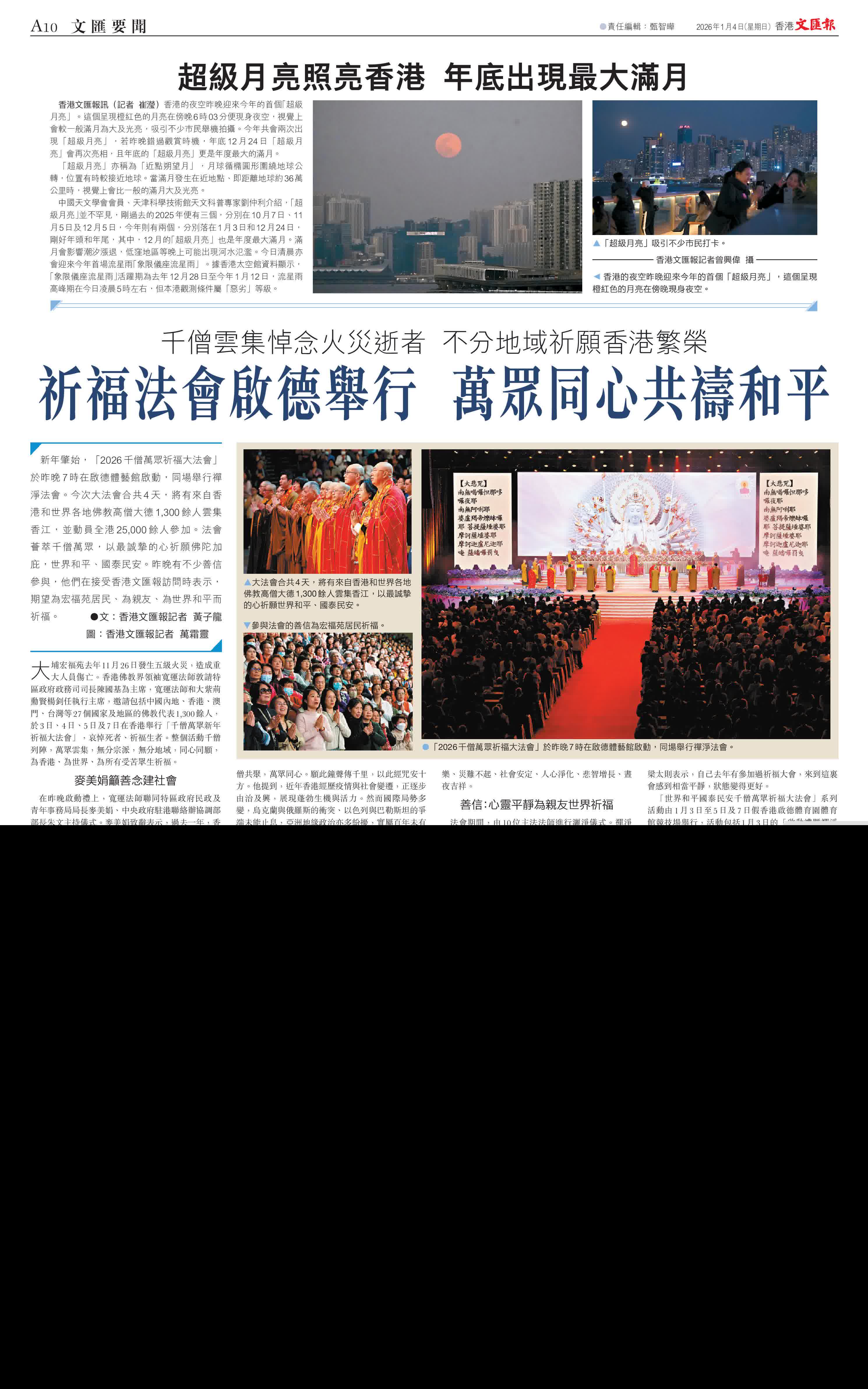中國天文學會會員、天津科學技術館天文科普專家劉仲利介紹,「超級月亮」並不罕見,剛過去的2025年便有三個,分別在10月7日、11月5日及12月5日,今年則有兩個,分別落在1月3日和12月24日,剛好年頭和年尾,其中,12月的「超級月亮」也是年度最大滿月。滿月會影響潮汐漲退,低窪地區等晚上可能出現河水氾濫。今日清晨亦會迎來今年首場流星雨「象限儀座流星雨」。據香港太空館資料顯示,「象限儀座流星雨」活躍期為去年12月28日至今年1月12日,流星雨高峰期在今日凌晨5時左右,但本港觀測條件屬「惡劣」等級。