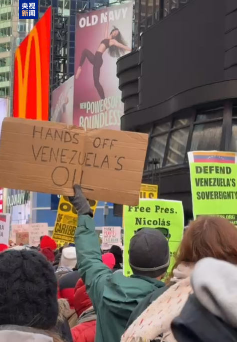 当地时间1月3日,央视记者获悉,为抗议委内瑞拉领导人马杜罗被捕,美国多地爆发反战示威。各地民众走上街头,抗议美国总统特朗普在委内瑞拉的军事行动以及逮捕马杜罗总统及其夫人。