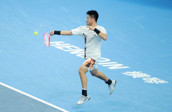 2025年11月20日,吴易昺在第十五届全运会网球男子单打决赛中。新华社记者 张晨霖 摄