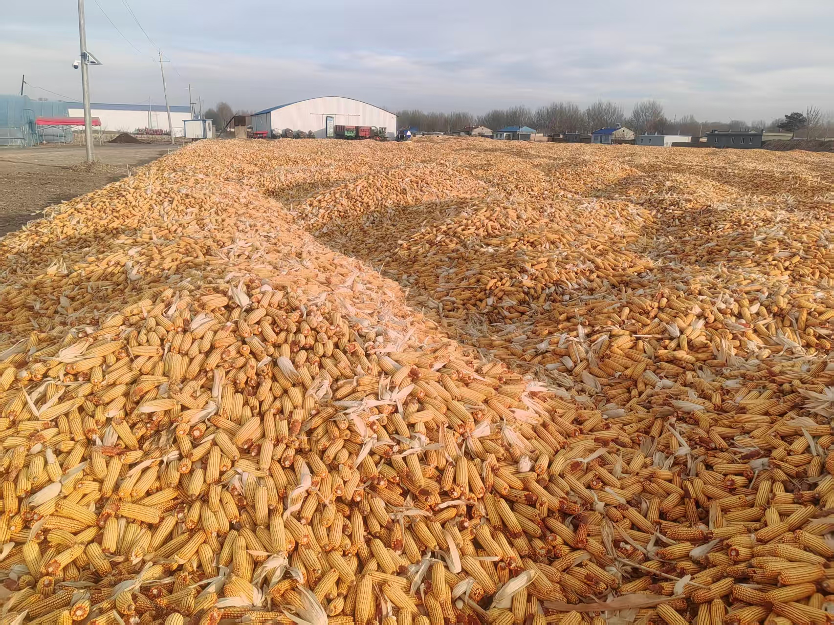 林甸县齐丰现代农机专业合作社晾晒玉米。