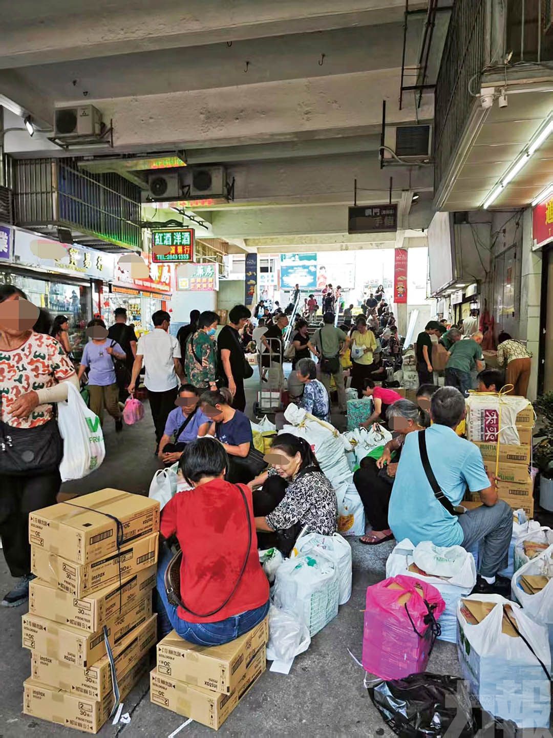 接近傍晚時間,長期有一堆人在關閘附近等待拿貨。