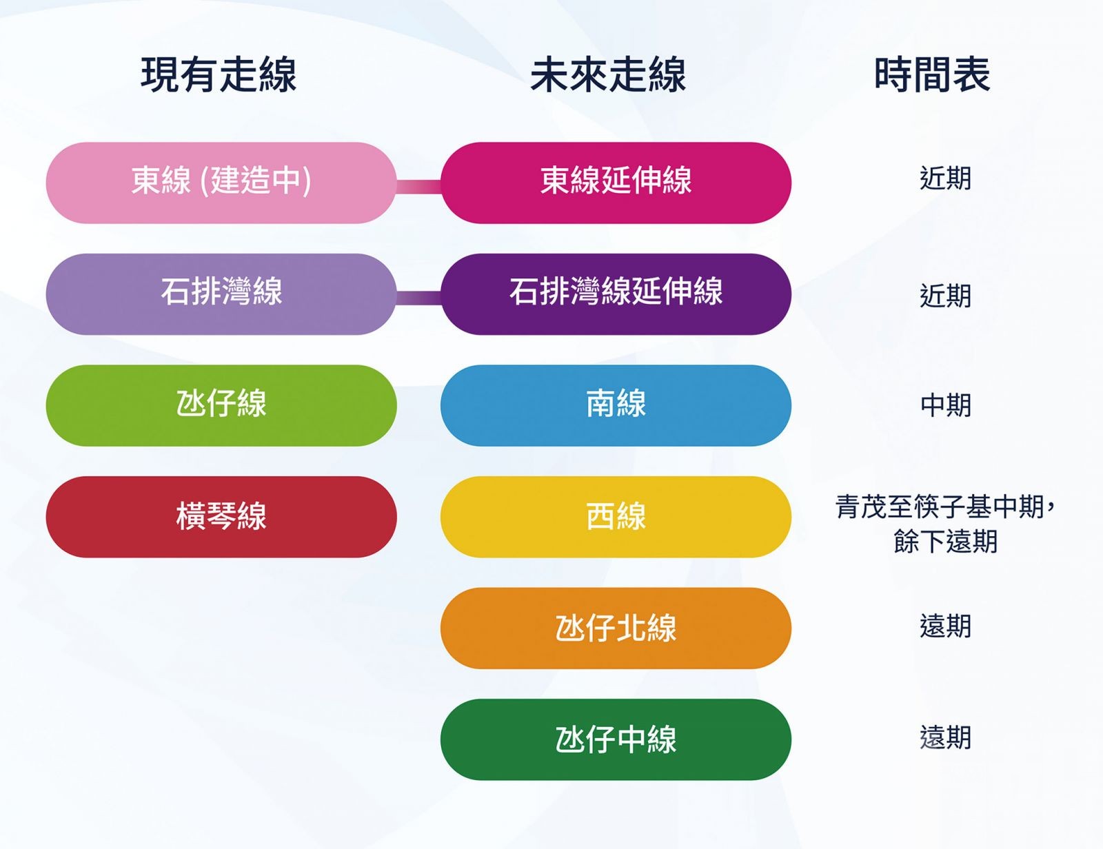 六條輕軌線路落成後,將與現有輕軌網共同構建全天候運作的環形網絡。
