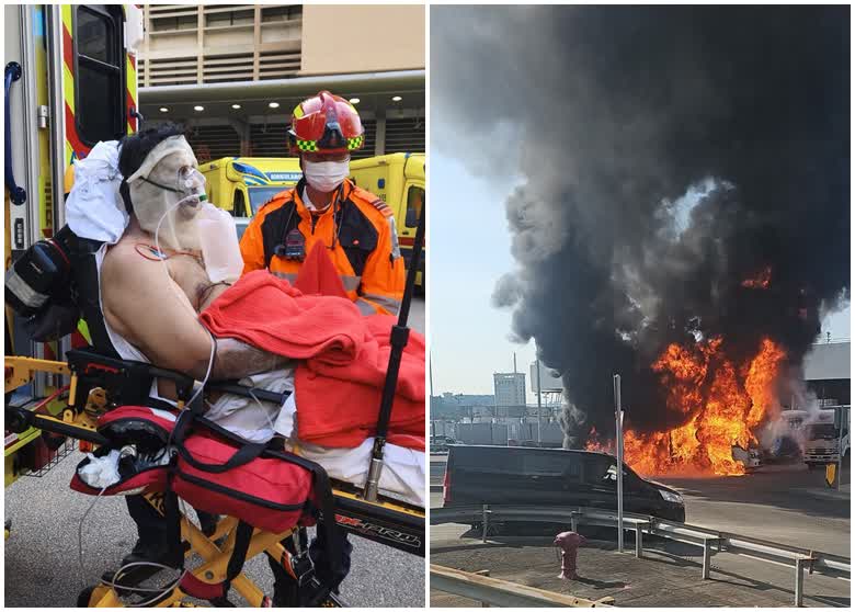 據悉,事發時懷疑一輛運載非法汽油的輕型貨車正向私家車油缸加油期間,噴油嘴冒煙並起火引致火警。事件中兩名男子受傷,其中一人是有黑幫背景的姓曹(40歲)男子,疑是非法流動加油站司機;另一人是光顧非法流動加油站的46歲私家車司機,他們經救治後情況危殆。
