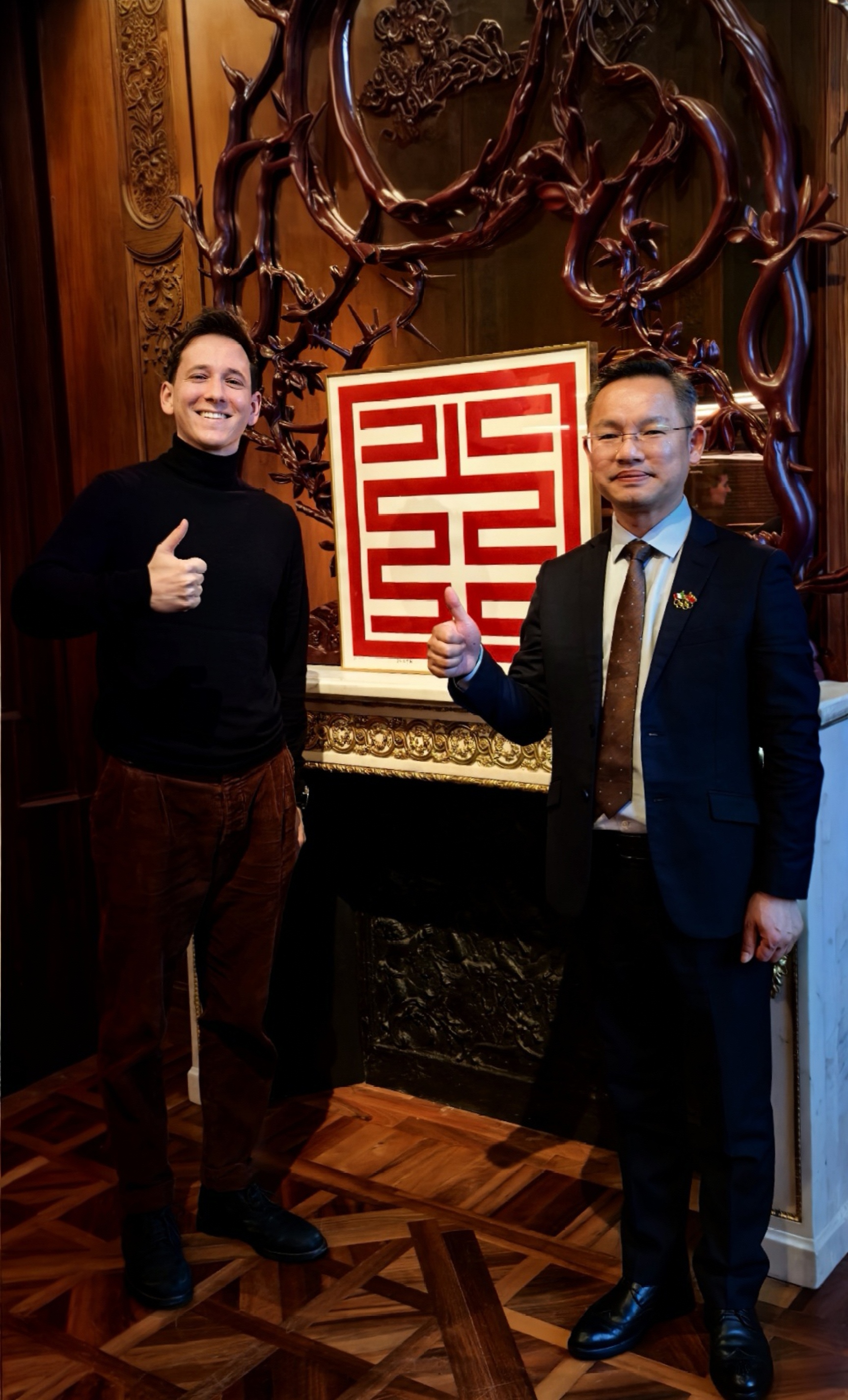 苏大宝表示,红色象征探索与拼搏,白色代表冰雪与挑战,两者的碰撞是中外文明互鉴的体现。此次参展展现了中国文化“叩问苍穹”与“拥抱世界”的格局,也为冬奥注入了东方韵味。