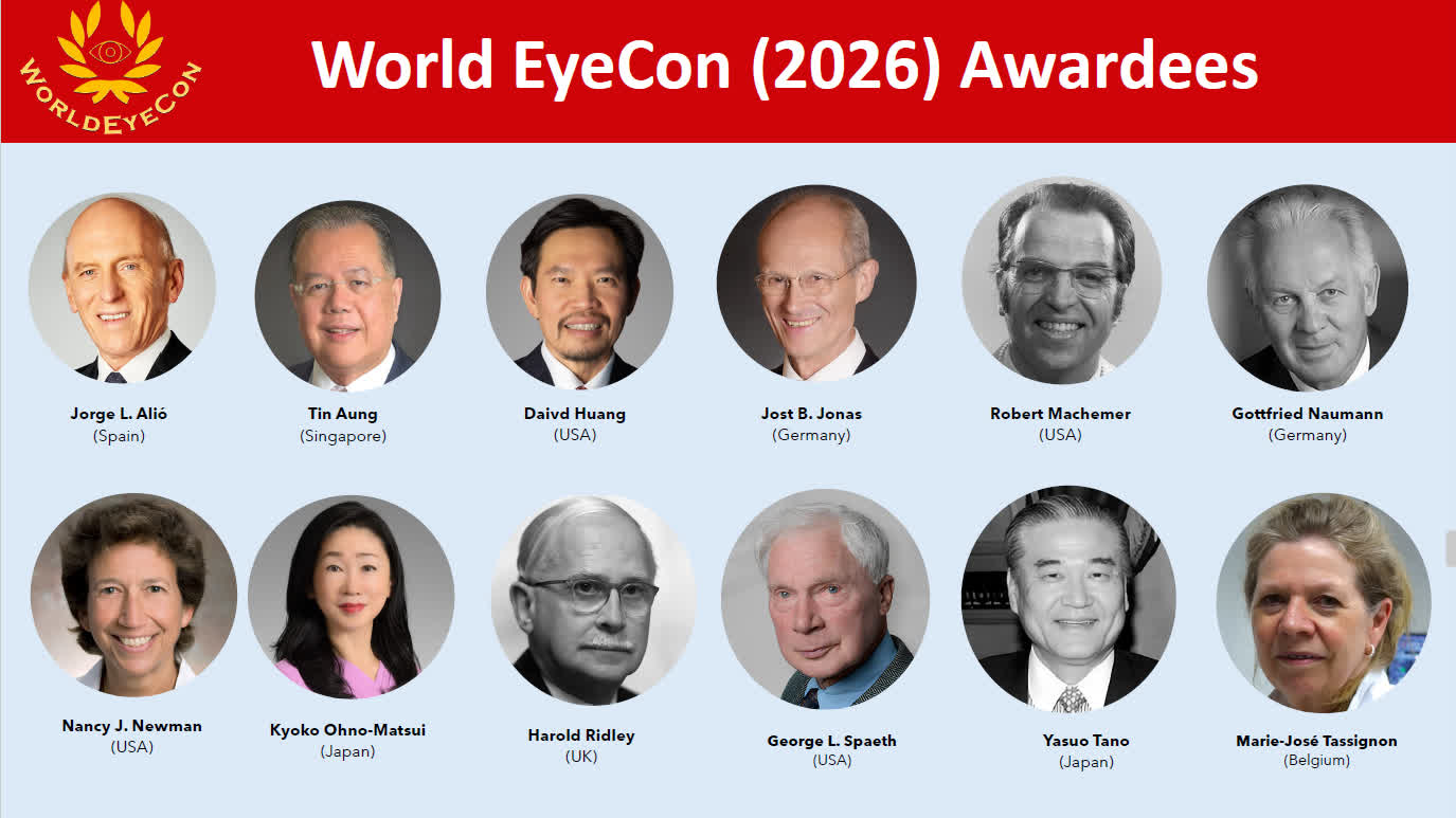 2026年度「全球眼科領袖榜」共有12位來自世界各地的眼科領袖獲獎。獲獎者涵蓋多個國家,包括西班牙的白內障與屈光手術權威Jorge L. Alió教授、新加坡青光眼專家Tin Aung教授、美國眼科影像學權威David Huang教授等。值得注意的是,已故的傑出眼科專家如美國的Robert Machemer教授、德國的Gottfried Naumann教授及英國的 Harold Ridley教授亦在此次評選中獲表彰,他們對眼科領域的貢獻令人永誌不忘。