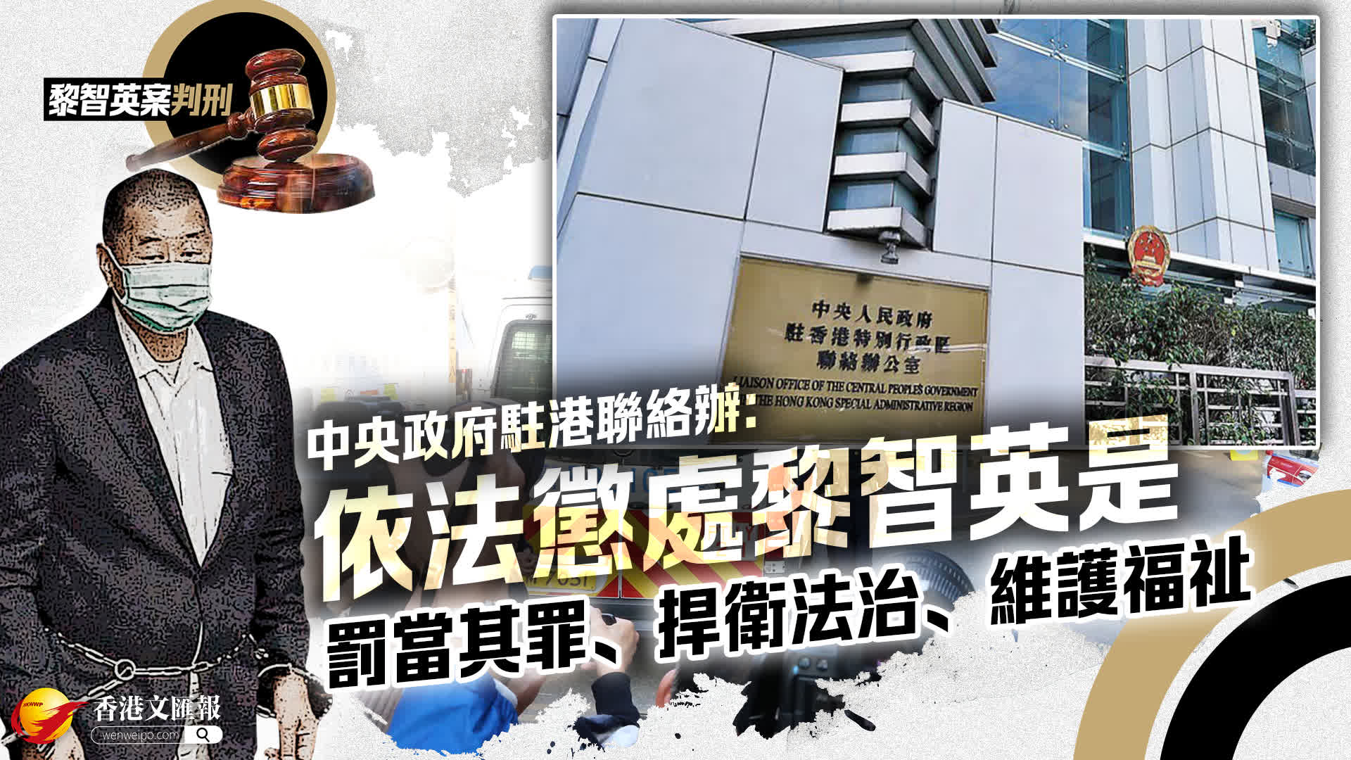 2月9日,中央人民政府駐香港特別行政區聯絡辦公室發言人發表談話,堅決支持香港特區履行維護國家安全的憲制責任,堅決支持香港特區維護國家主權、安全、發展利益,依法懲治危害國家安全的犯罪行為和活動,堅決支持香港特區司法機構對反中亂港首惡分子黎智英串謀勾結外部勢力危害國家安全等罪行作出公正判刑。
