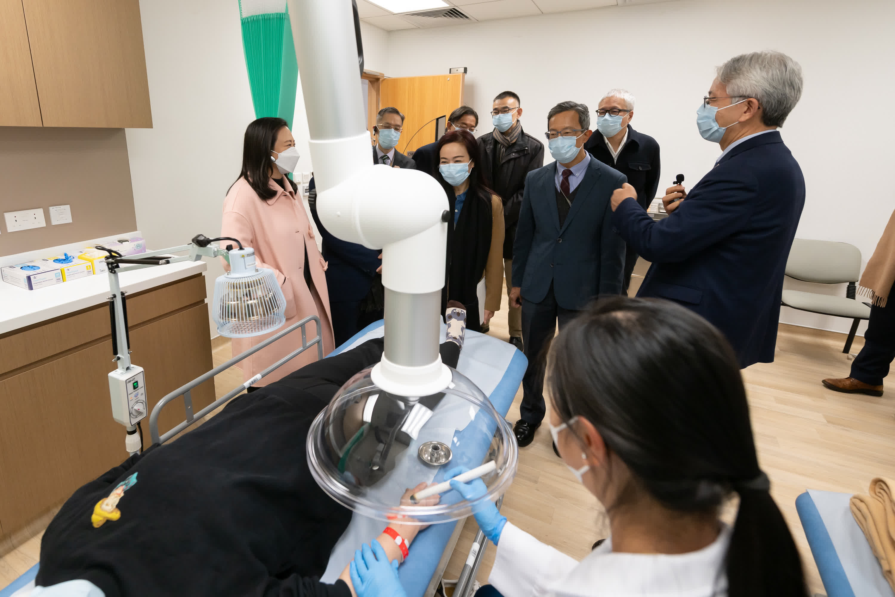 議員其後參觀中醫醫院的設施,包括日間病房及私家門診,以了解病人護理和就診流程,並觀看艾灸治療的示範,加深對中醫藥文化和應用的認識。議員亦向院方代表了解醫院私家門診的收費及醫護人手安排。