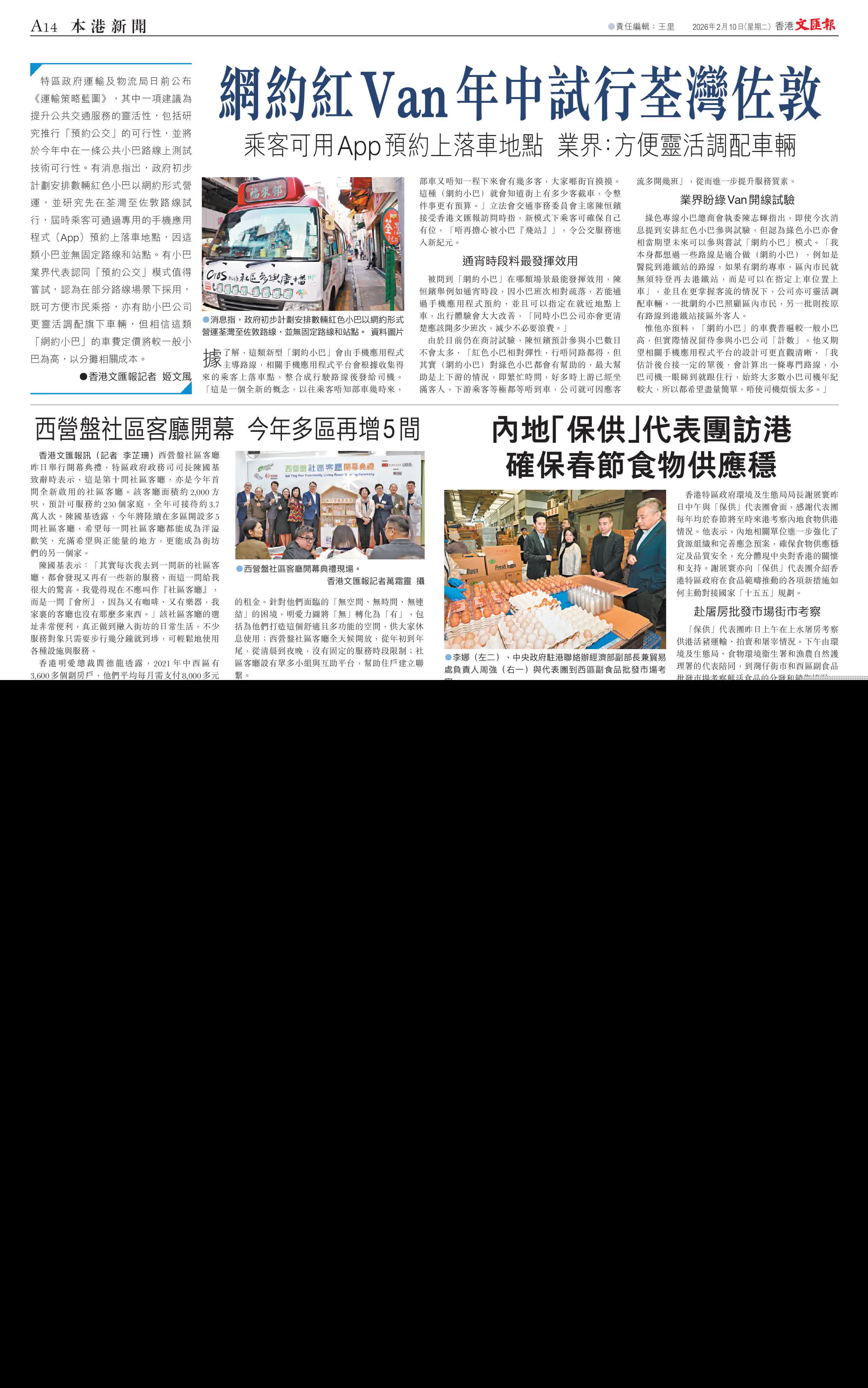 據了解,這類新型「網約小巴」會由手機應用程式主導路線,相關手機應用程式平台會根據收集得來的乘客上落車點,整合成行駛路線後發給司機。「這是一個全新的概念,以往乘客唔知部車幾時來,部車又唔知一程下來會有幾多客,大家喺街盲摸摸。這種(網約小巴)就會知道街上有多少客截車,令整件事更有預算。」立法會交通事務委員會主席陳恒鑌接受香港文匯報訪問時指,新模式下乘客可確保自己有位,「唔再擔心被小巴『飛站』」,令公交服務進入新紀元。