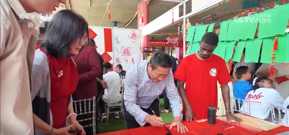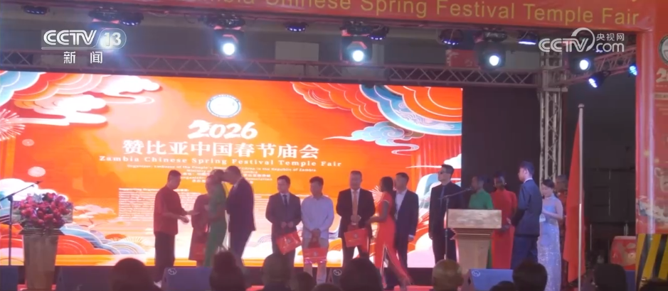 记者来到赞比亚首都卢萨卡,赞比亚中国春节庙会正在这里举行。活动现场张灯结彩,喜气洋洋。中央广播电视总台2026年春晚宣传片也在这里的户外大屏滚动播放,向当地华侨华人和赞比亚民众送上了中国马年春节的新春祝福。