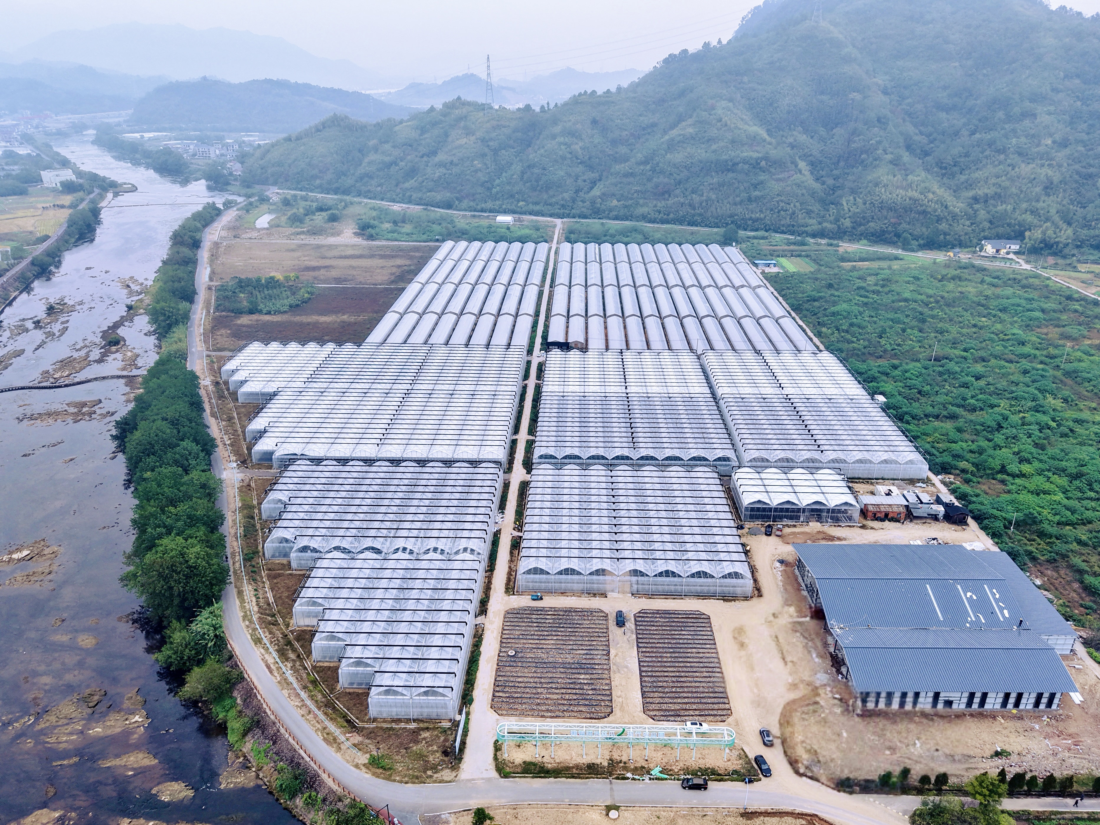 建德市“十里寿昌江”片区组团丝瓜现代化产业园俯瞰图。