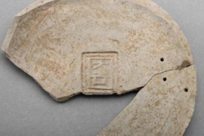 展出文物:“大吉”戳印文器底西汉(北京市文物局供图)