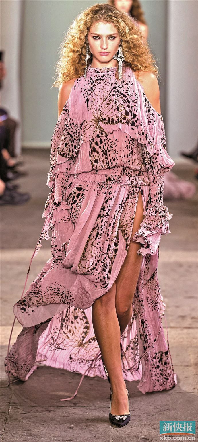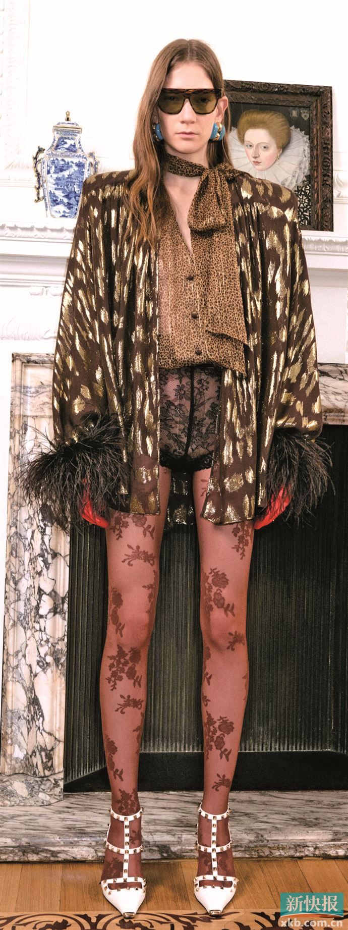 蕾丝、薄纱等柔美单品中和了动物纹样的野性张狂。