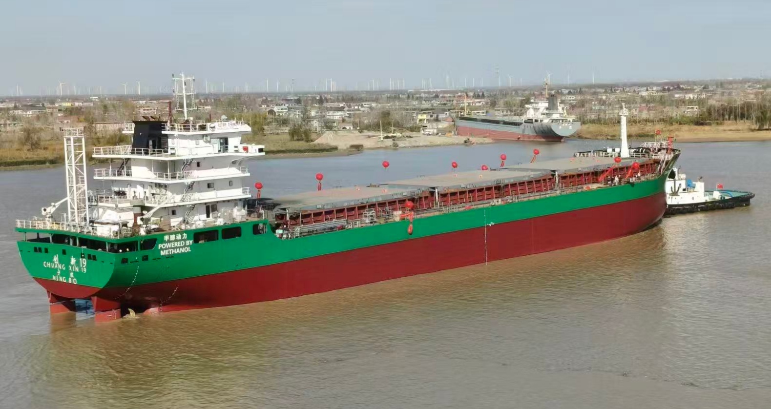 2月14日,江苏勤丰船厂码头汽笛长鸣,国内首艘以甲醇为单一燃料的江海直达船舶——“创新19”轮正式启航,驶往宁波舟山港。这是我国首艘15000吨级甲醇单一燃料特定航线江海直达船舶,其首航标志着甲醇燃料在我国航运领域的商业化应用迈出关键一步。