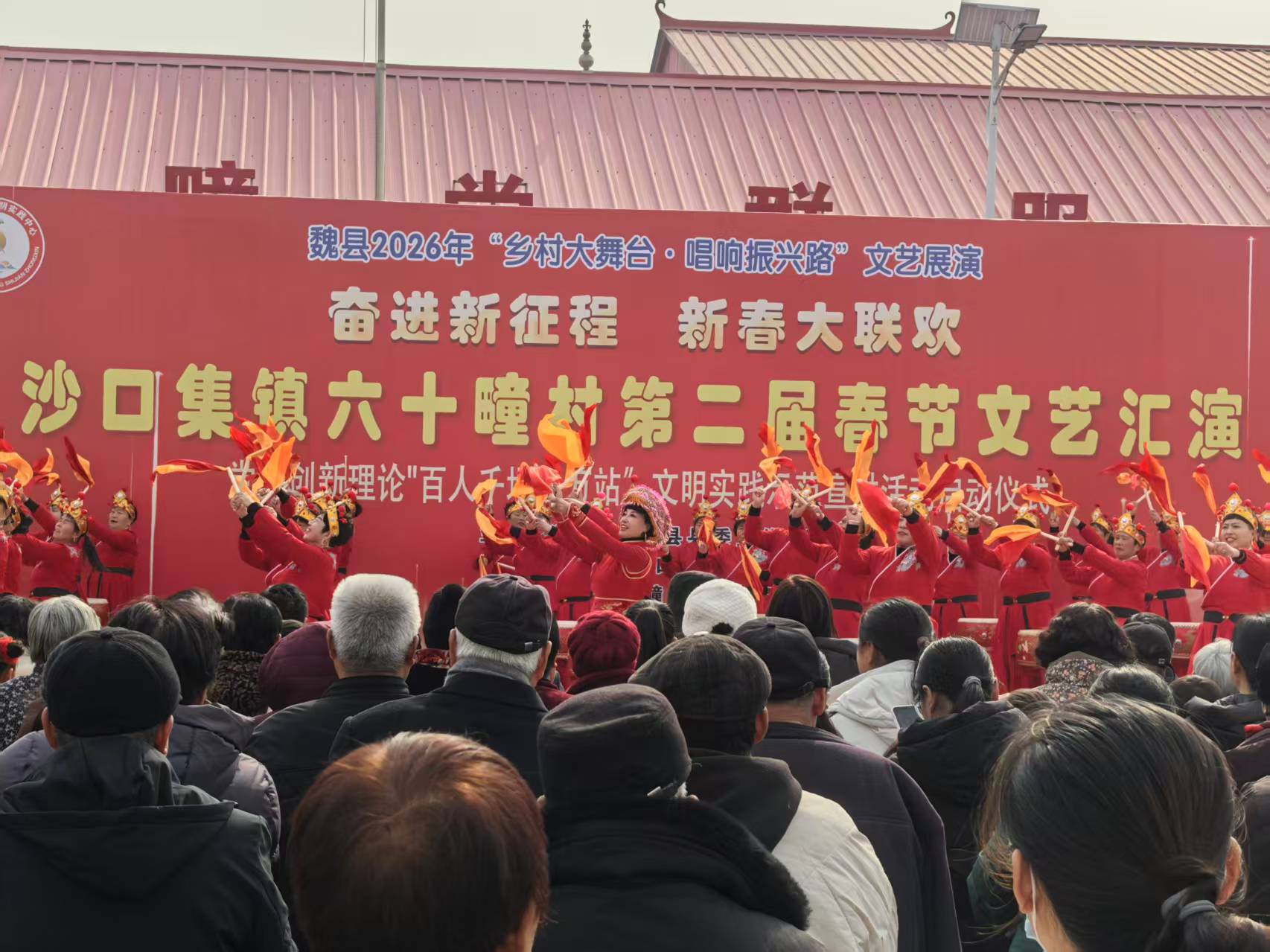 “临近春节,村里也越来越热闹啦!”2月13日是农历腊月二十六,在河北省魏县东代固镇邵村文化广场,鼓乐铿锵,歌舞阵阵,一场集青年婚介、敬老爱老、直播销售、送春联、文艺汇演于一体的迎新春“村晚”激情进行,乡亲们载歌载舞喜迎新年。