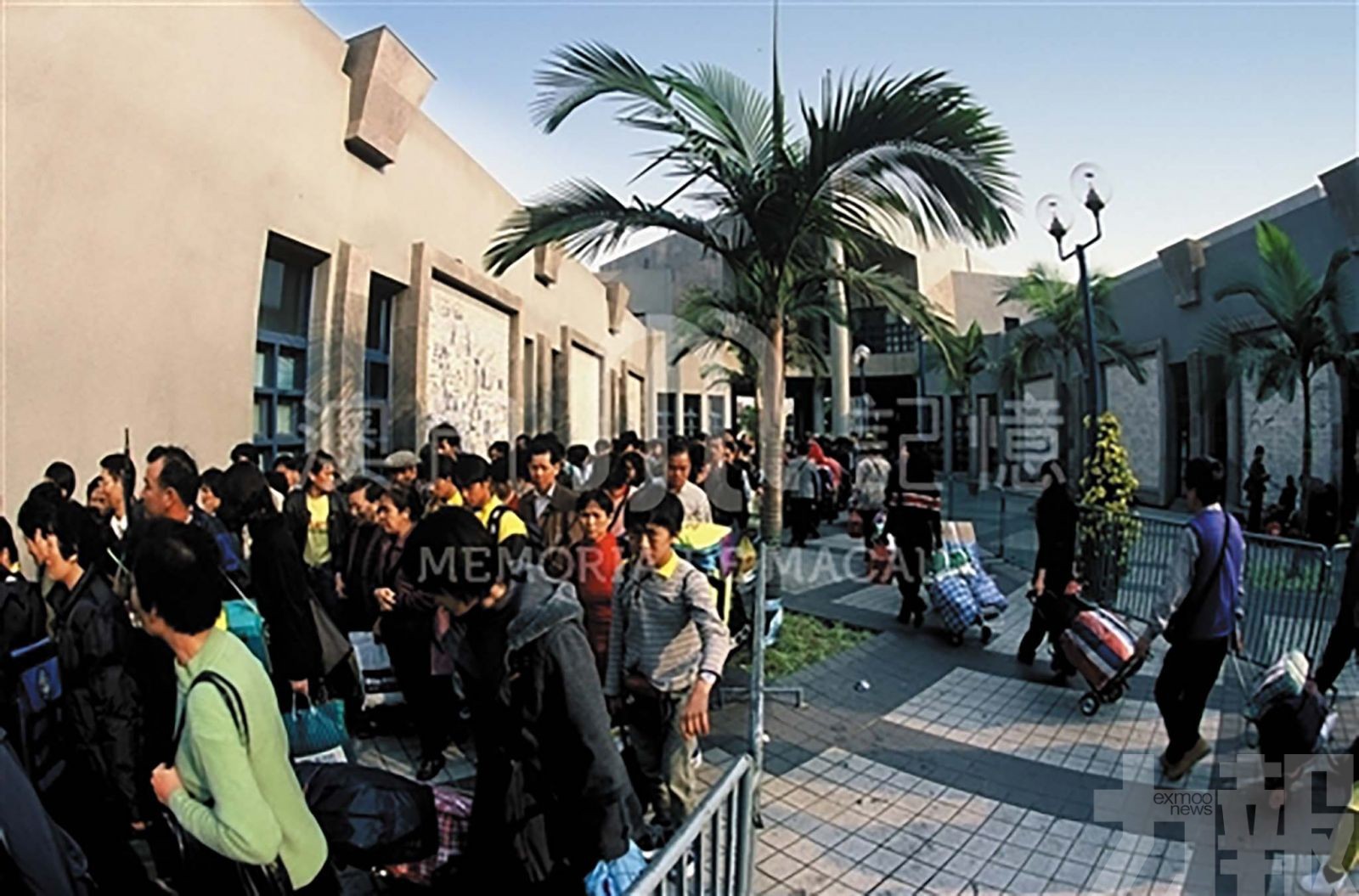 1998年的春節,不少澳門人穿過關閘廣場返鄉探親 。(李德勝攝,澳門攝影學會提供,摘自「澳門記憶」文史網)