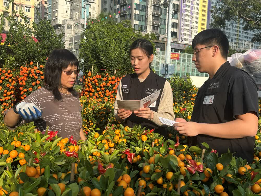入境處調查人員巡查多個年宵市場攤檔,共拘捕12名懷疑非法勞工及6名涉嫌聘用非法勞工的僱主。被捕的懷疑非法勞工為4男8女,年齡介乎18至52歲。被捕時,他們正在攤檔從事銷售工作。因涉嫌聘用非法勞工被捕的僱主為2男4女,年齡介乎33至49歲。在執法的同時,入境處亦安排宣傳車及職員到全港各區向年宵市場檔主及其他商戶派發宣傳單張,呼籲切勿聘用非法勞工。