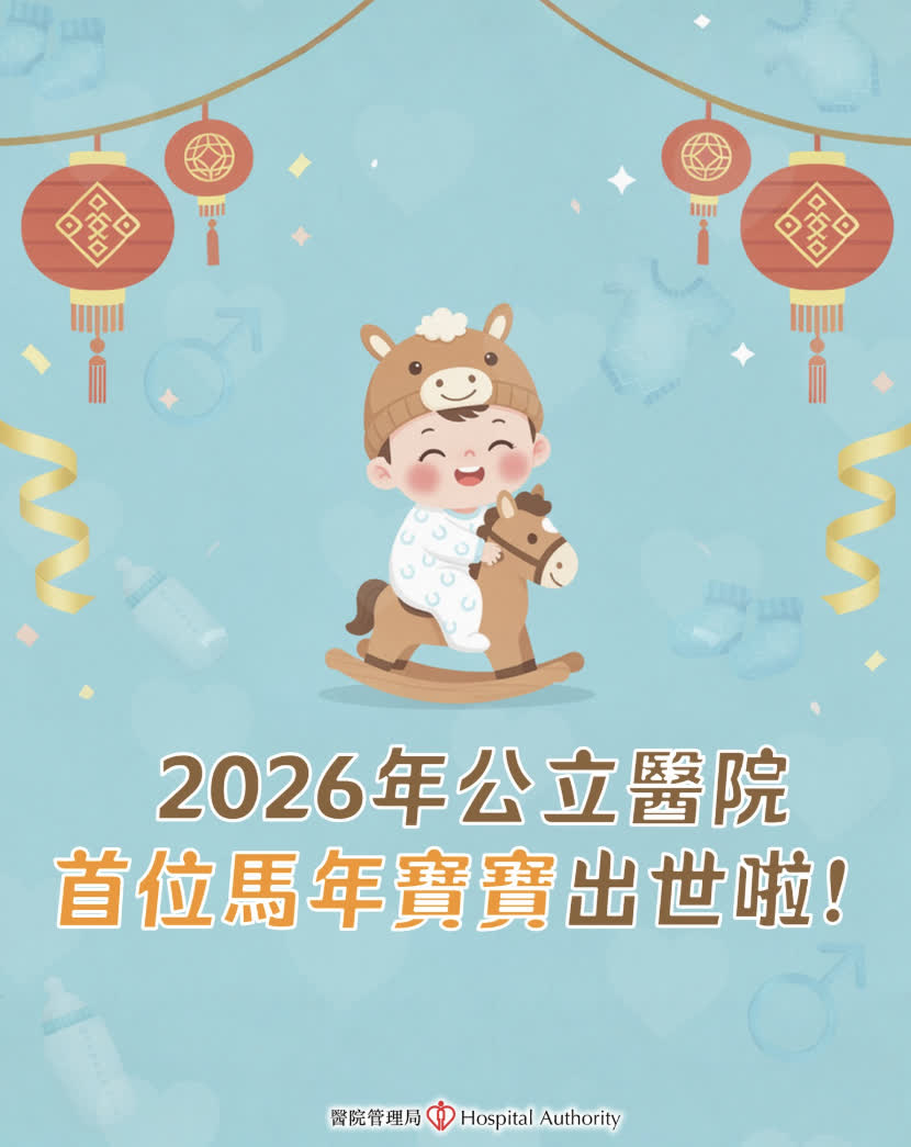 另外,醫管局表示,一名男嬰於凌晨零時零分出生於廣華醫院,重3.05公斤,母子平安,是公立醫院首位馬年寶寶。