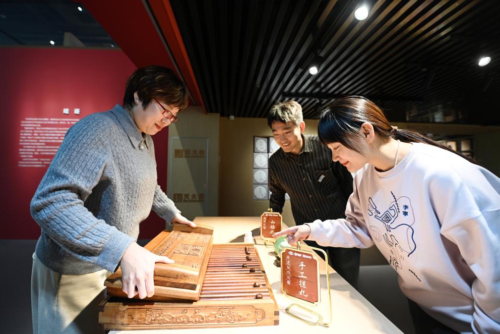 2025年12月25日,在位于天津市南开区的达仁堂中医药博物馆,工作人员(左)在展示手工搓丸技艺。新华社记者 赵子硕 摄