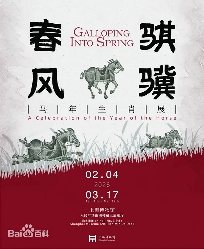 2026年2月4日,“春风骐骥:马年生肖展”在上海博物馆人民广场馆启幕。展览甄选来自甘肃省博物馆、甘肃省文物考古研究所、咸阳博物院及上海博物馆馆藏的16件/组马主题文物,分为“鞍马征尘”“昭陵六骏”“骏影流光”“诗情画意”等板块,展现中华文化中“马”的多元内涵与吉祥寓意。展览将持续至3月17日。
