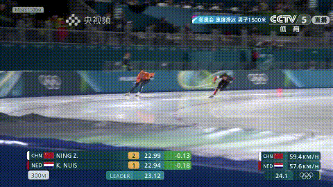 从宁忠岩和荷兰选手凯尔·内斯出现在赛道上,到镜头移到下一组比赛,时长约4分半,整个竞速过程1分40多秒,解说词只有约400字。如何清晰描述赛况,同时给观众提供精准的延展信息?