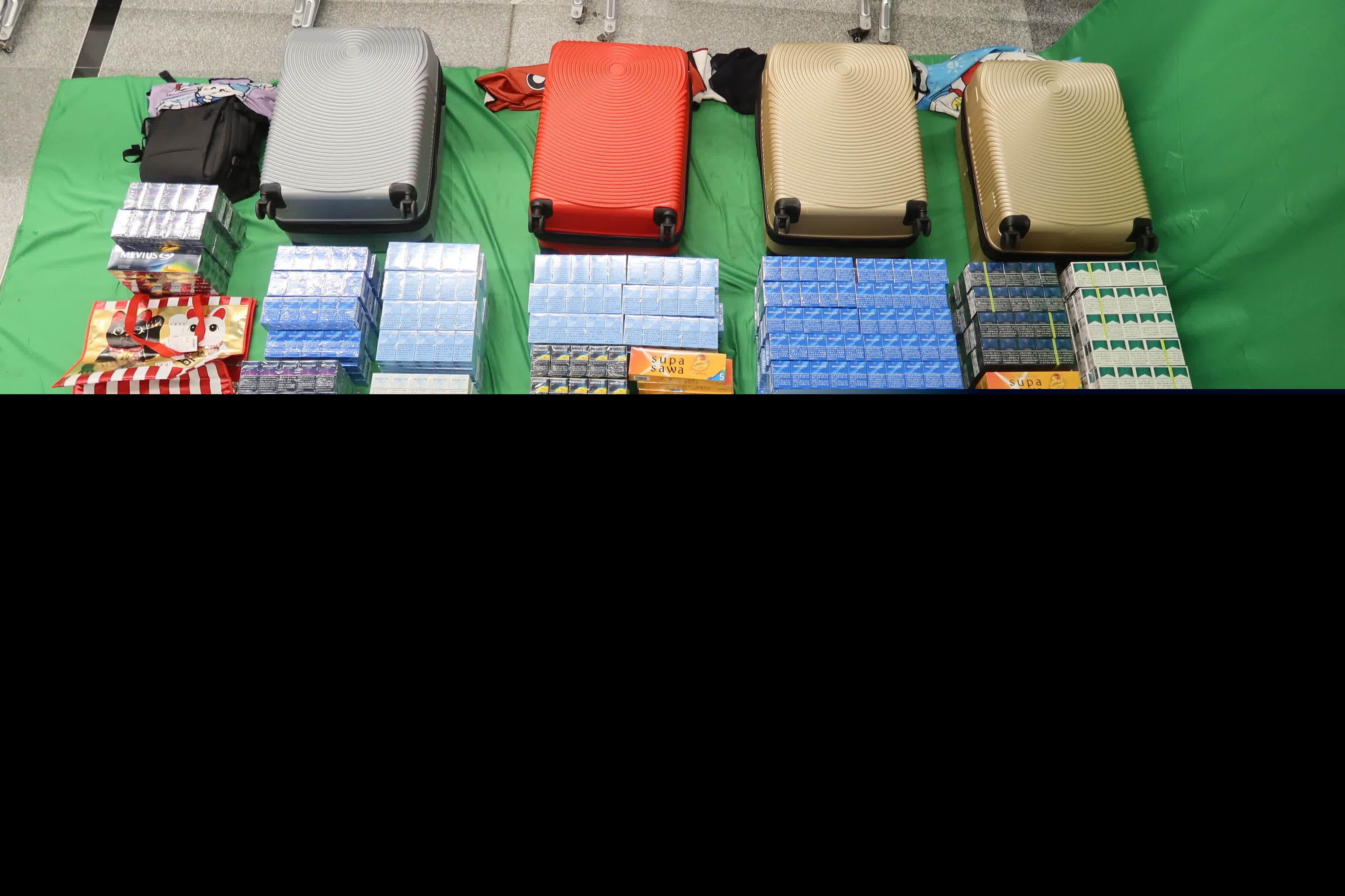 海關人員於2025年12月18日在香港國際機場截查一名29歲抵港女旅客及一名35歲的抵港男旅客,並在他們攜帶的個人行李內檢獲約85,600支未完稅香煙,估計市值約38.5萬元,應課稅值約28.3萬元,以及6件另類吸煙產品,估計市值約1,080元。該兩名旅客隨即被捕。