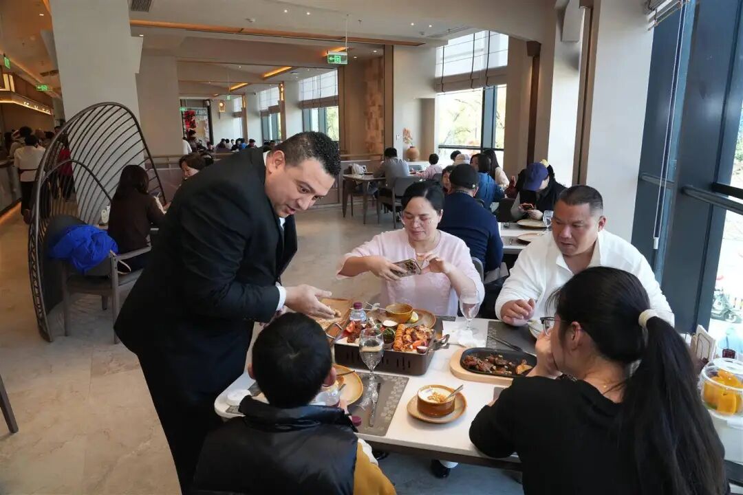 更具特色的是义乌的国际餐厅。遍布主城区的70余家国际餐厅生意爆火,贝迪餐厅外的等候队伍蜿蜒数十米,空气中弥漫着土耳其烤肉的孜然香与阿拉伯烤饼的麦香。在有着“联合国社区”之称的鸡鸣山社区,也门商人阿卜杜勒带着新朋友品尝家乡蜜枣茶,不同语言、不同肤色的人们和谐共处,构成一幅微缩的世界地图。