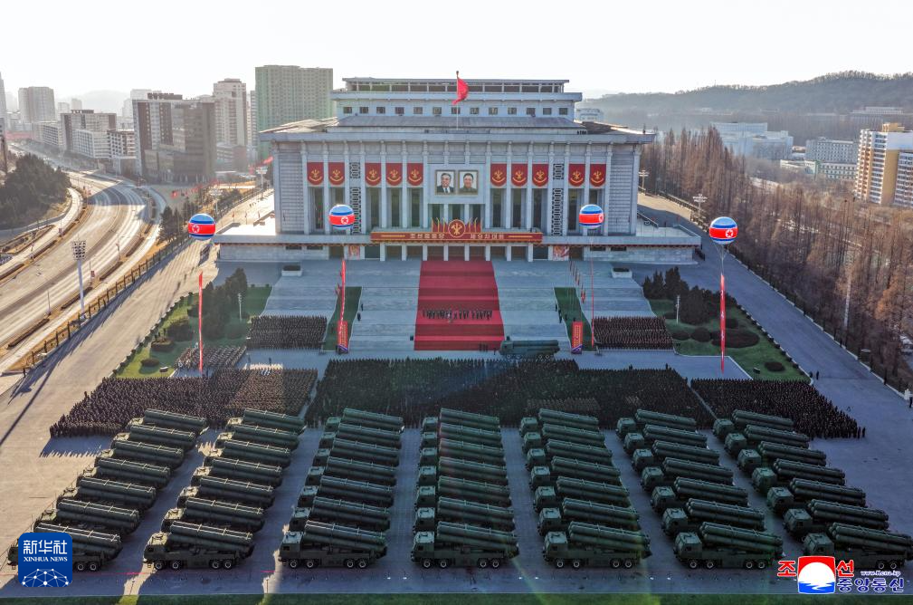 这是2月18日在朝鲜平壤拍摄的火箭炮赠送仪式现场。新华社/朝中社