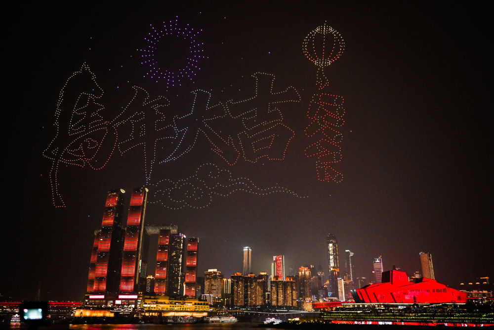 这是2月17日在重庆拍摄的无人机灯光秀。新华社记者 王全超 摄