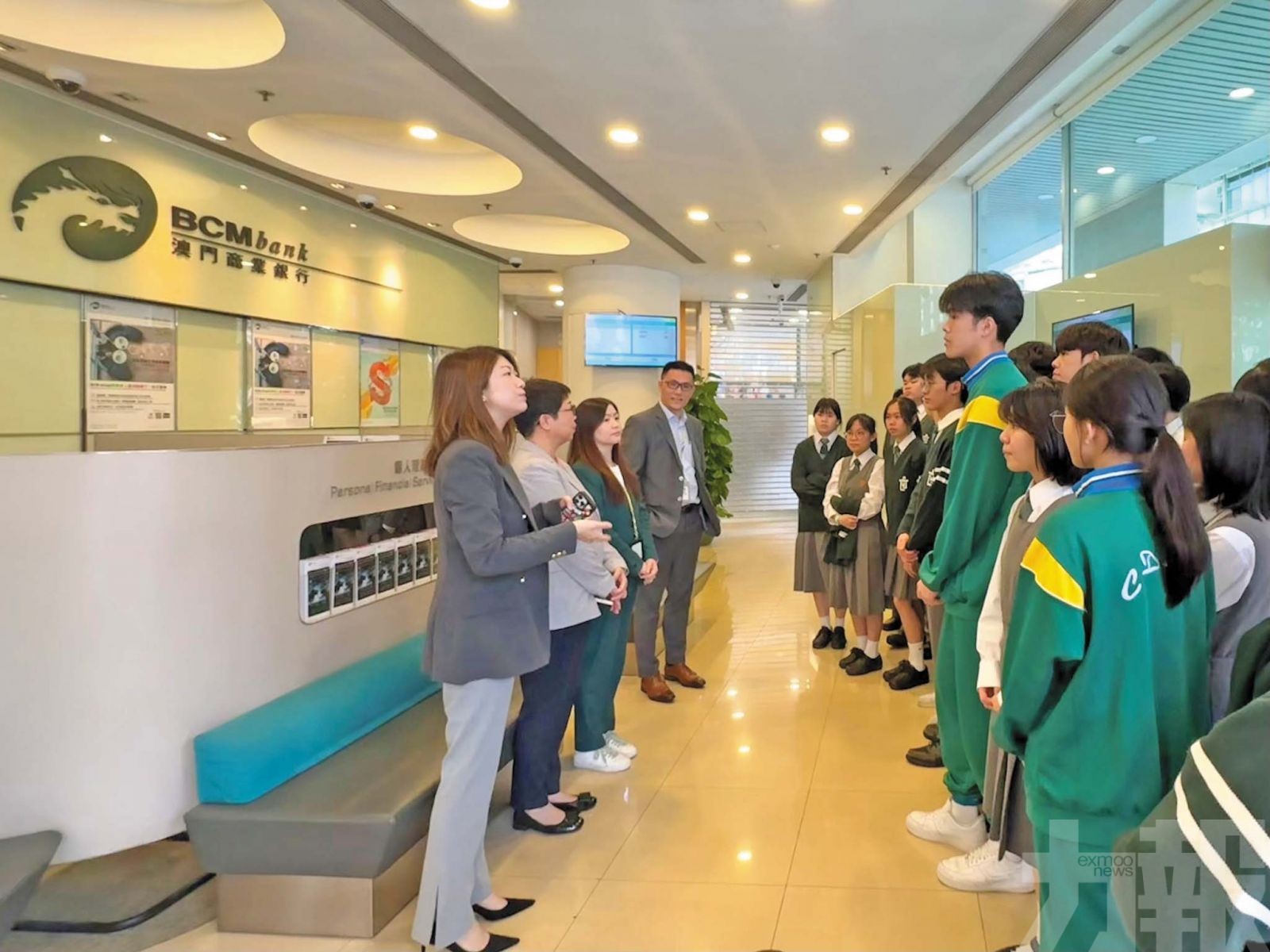 澳門商業銀行職員帶領同學們參觀該行總行。