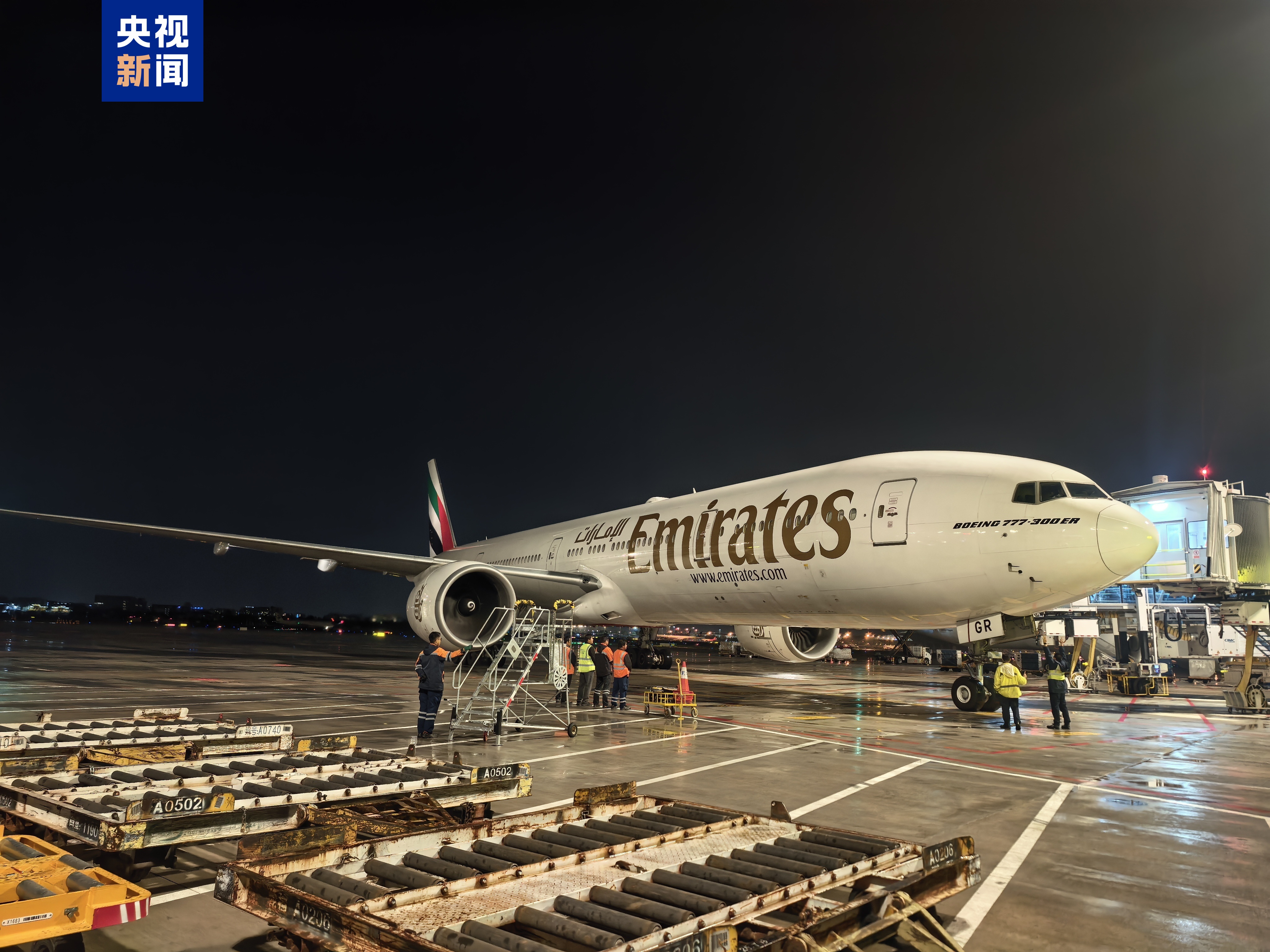 记者了解到,北京时间3月4日21时59分左右,阿联酋航空EK362次航班(迪拜—广州)已平稳落地广州白云国际机场,飞机22时许缓缓滑行到停机位,受本轮伊朗局势影响的滞留旅客正有序从白云边检大厅入境。