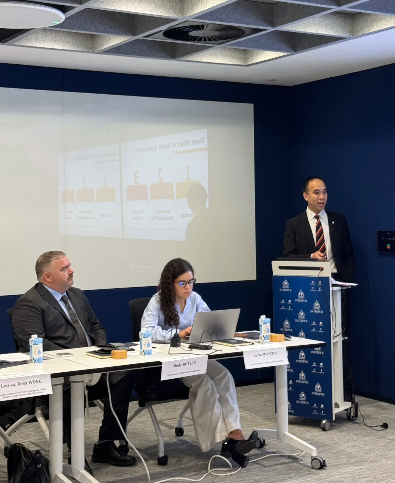 是次會議匯聚國際刑警組織內部監督辦公室、新加坡警察部隊以及香港廉政公署代表,圍繞以智慧警政模式推動誠信治理,以及就運用科技提升內部監察與風險預警效能等議題深入交流。各方探討建立持續培訓與經驗分享平台,進一步鞏固跨地域協作網絡,深化夥伴關係,體現全球警務機構在誠信管治上的共同承擔與長遠承諾。