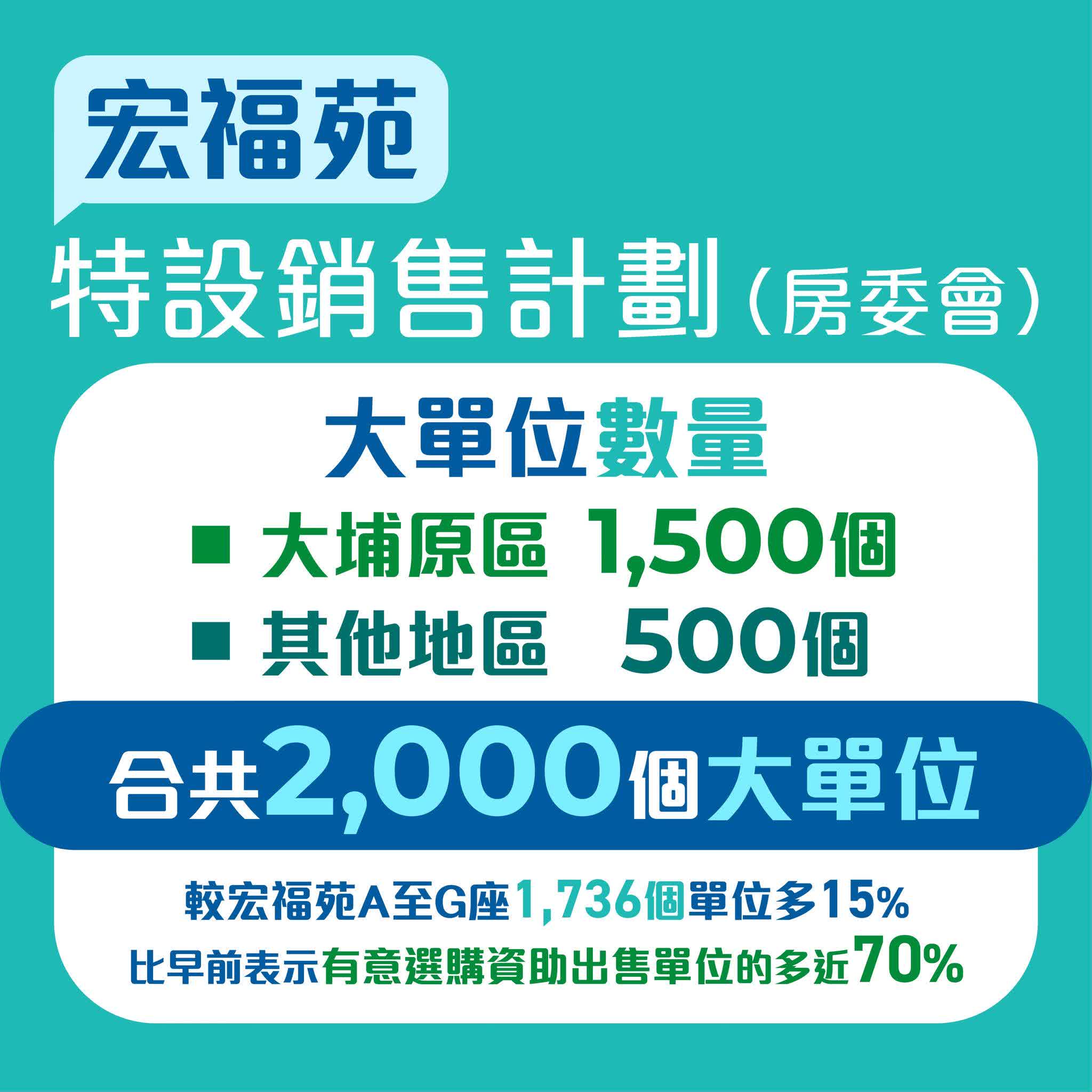 何永賢稱,明白業主再次置業時,不同面積及不同地區的單位都會有一定需求。整體而言,「特設銷售計劃」為宏福苑業主提供的3900個單位中,有3500個由房委會提供,在單位大小方面,約300呎以下的單位僅540個,佔整體僅約15%,餘下約85%單位均為約375呎或以上單位。