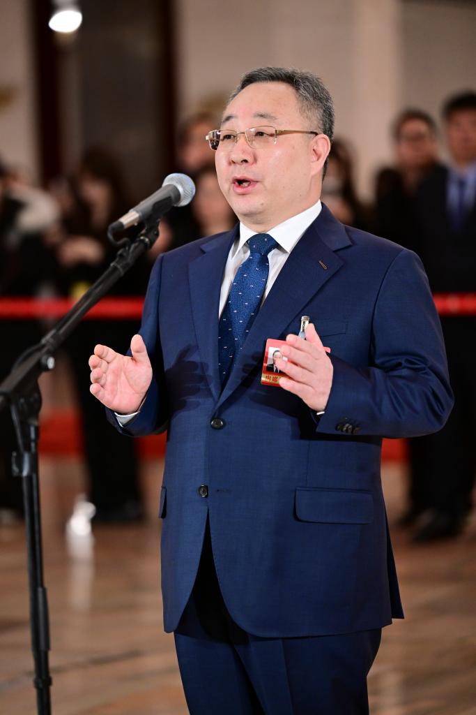 3月11日,全国政协十四届四次会议第三场“委员通道”集体采访活动在北京人民大会堂举行。这是全国政协委员刘成勇接受媒体采访。新华社记者 陈晔华 摄