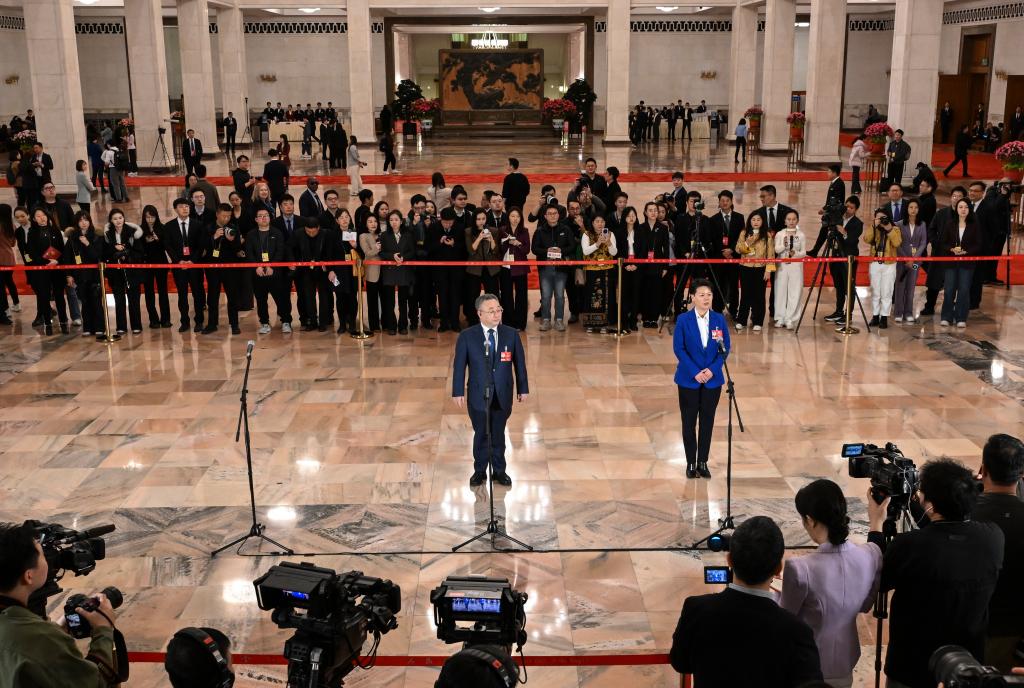 3月11日,全国政协十四届四次会议第三场“委员通道”集体采访活动在北京人民大会堂举行。新华社记者 曹祎铭 摄