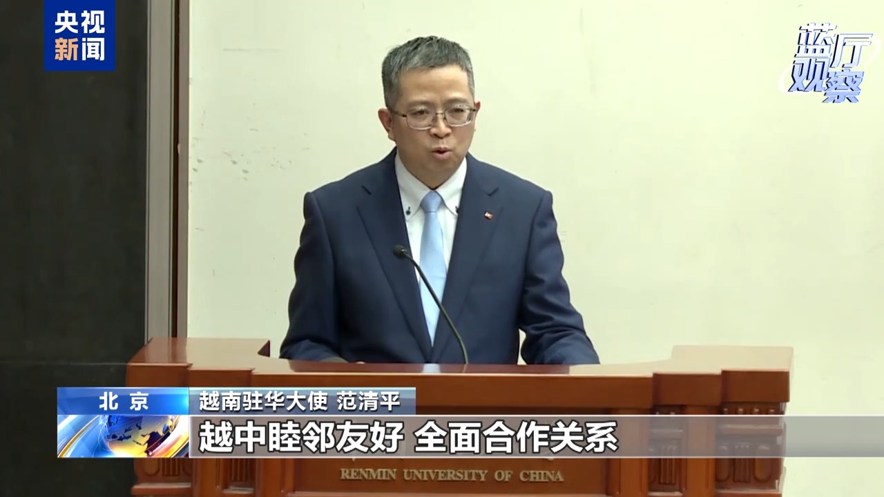 越南驻华大使范清平日前在中国人民大学重阳金融研究院发表主题演讲,强调越南的对外政策把发展越中睦邻友好、全面合作的关系,推动构建具有战略意义的越中命运共同体,视为头等优先。越方将重点落实双方高层协商一致的重大合作项目,继续加强人民之间的交流。