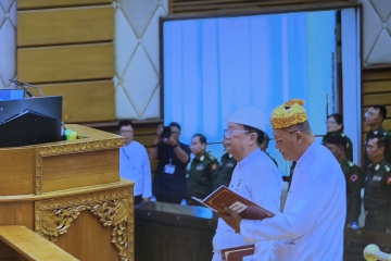 当地时间18日上午,缅甸第三届民族院(上议院)首次会议在内比都举行。经众议员投票,昂林堆当选民族院新任议长,杰鹏瑙当当选新任副议长。会议当天共有213名议员出席。