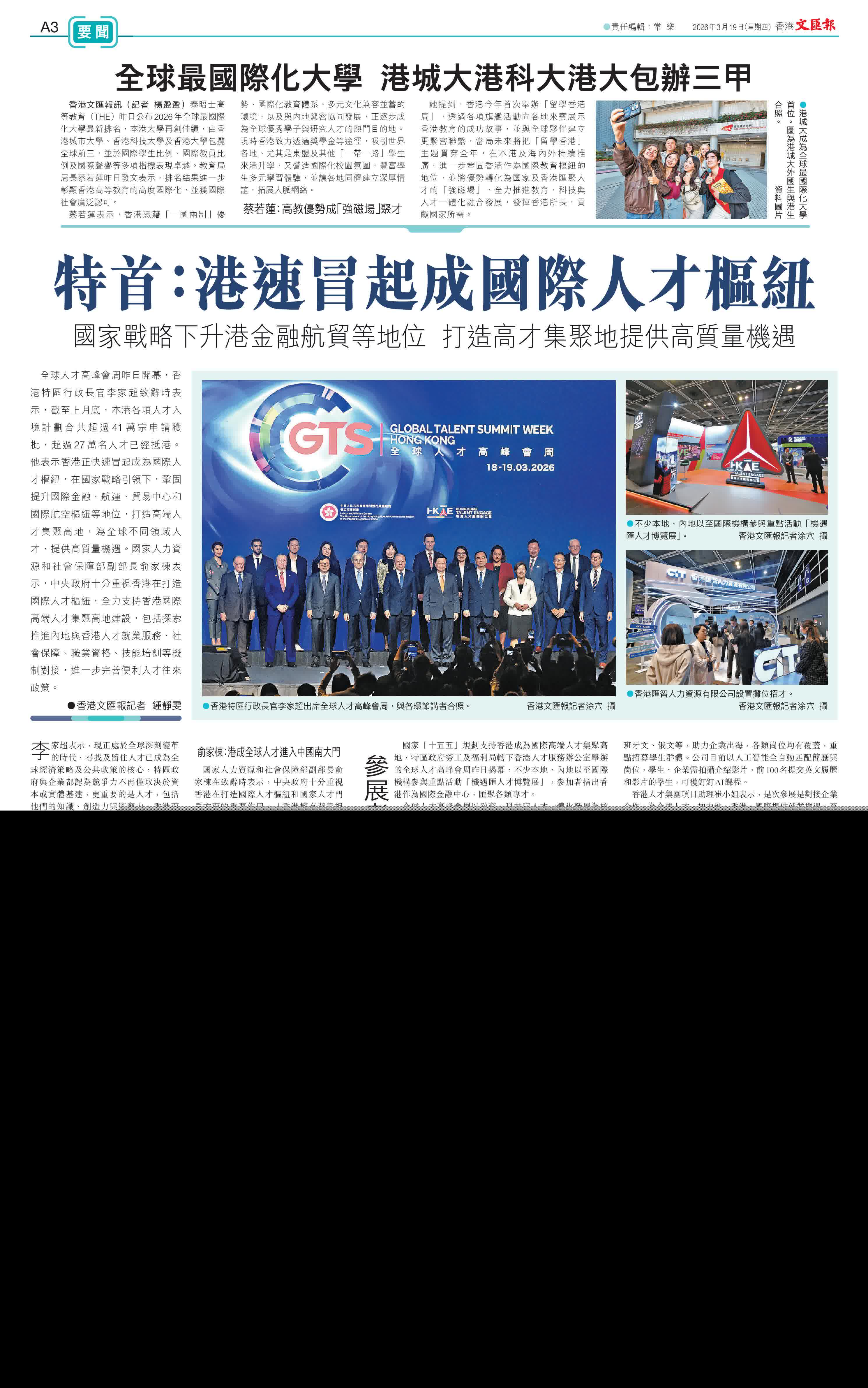 他續稱,香港快速發展成為國際人才樞紐,有賴一套全面而具前瞻性的策略推動,將人才發展與經濟轉型、科技進步和區域協作融合。香港在這方面的努力備受肯定,並在國際管理發展學院《2025年世界人才排名》中躍升至全球第四位,高踞亞洲榜首。
