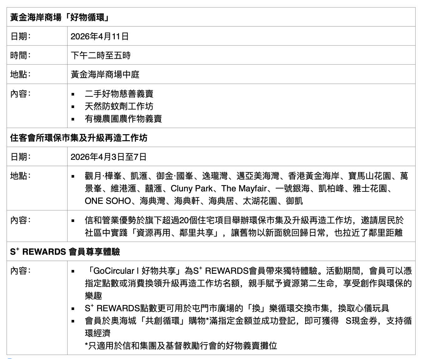 為鼓勵大眾共同實踐循環經濟,信和集團首次舉辦跨區跨界別的「GoCircular|好物共享」企劃,聯動旗下140個住宅、商業物業及住客會所等,以「減廢、重用、回收」為核心,透過一系列多元活動,鼓勵公眾重新想像日常物品的運用方式,將循環理念融入生活,實現經濟活動與環境保護相互促進和協同共生。