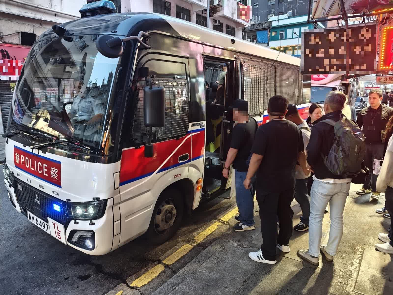 行動中,人員共拘捕129名男子及74名女子,年齡介乎16至70歲,當中包括72名外籍、29名非華裔、90名本地及12名內地人。他們分別涉嫌「管理賭博場所」、「在賭博場所內賭博」、「無牌賣酒」、「無牌藏有酒類飲品可作販賣用途」、「在沒有領有酒牌的處所飲酒」、「販運危險藥物」、「管有危險藥物」、「管有攻擊性武器」、「非法禁錮」、「傷人」、「搶劫」、「襲擊致造成身體傷害」、「在公眾地方打鬥」、「刑事損壞」、「違反逗留條件」、「施用藥物或使用器具以促致墮胎」、「以欺騙手段取得財產」、「處理已知道或相信為代表從可公訴罪行的得益的財產」(俗稱「洗黑錢」)、「非法入境」等罪行。