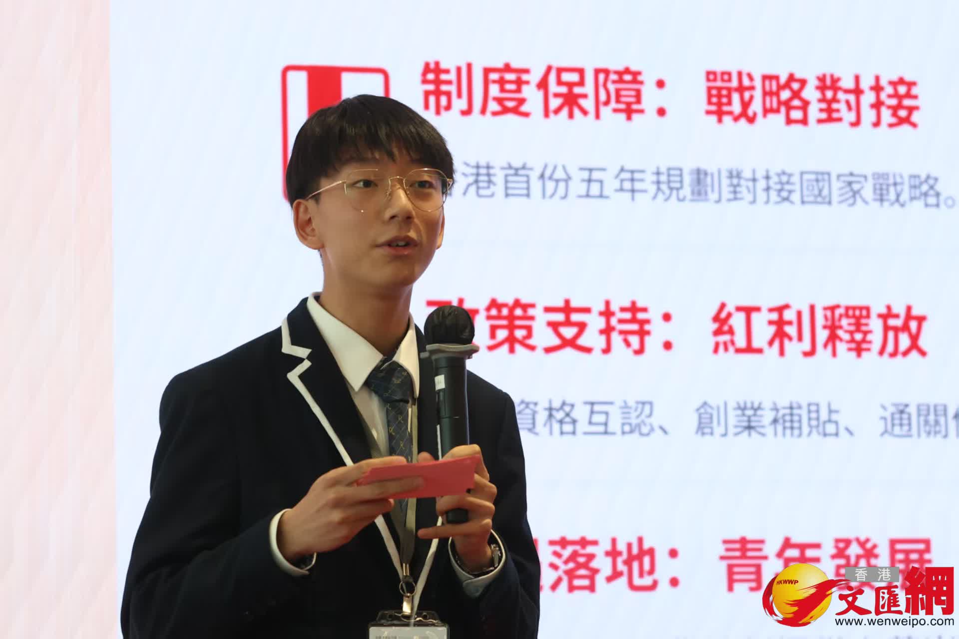 獲得中學組冠軍的禮賢會彭學高紀念中學中四學生易瑞天,在北京出生,後來港升學。他表示,這段橫跨兩地的成長經歷賦予他獨特的視角,因此在撰寫演講稿時,特意嘗試將北京與香港的觀察連結起來,從兩地視角切入國家「十五五」規劃的意義。在他眼中,北京作為首都,承載着國家深厚的文明底蘊,是政治文化中心,亦是世界了解中國的必到之地;而香港在多方面與國際接軌,具備「超級聯繫人」角色所需的國際化特色,這正是他來港讀書的重要原因,亦讓他既熟悉內地的國情文化與發展需求,並在香港的學習中培養了開放思維和國際視野。