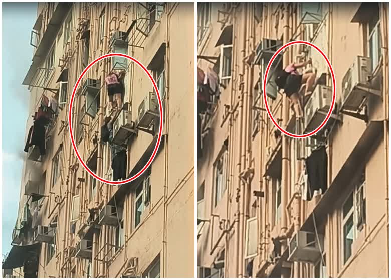 有街坊提供片段顯示,火警期間,大廈高層有兩名女住客,揹着背囊攀出單位,並沿大廈外牆喉管及冷氣機作為踏腳,攀落樓下進入另一單位逃生,期間拍片者亦不禁替她們捏一把汗。